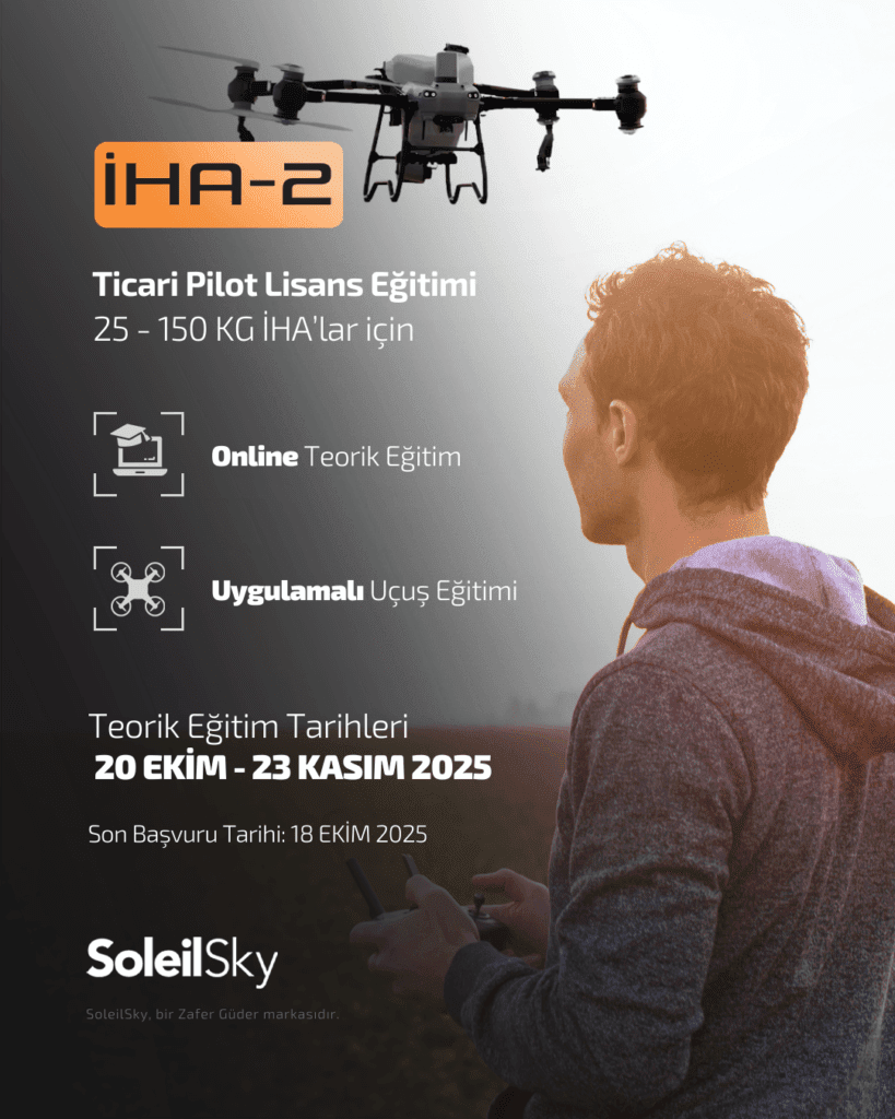 - 25-150 Kg aralığındaki İnsansız Hava Araçlarını kullanmak için gerekli olan lisans eğitimidir. Havadan ilaçlama işi yapacak kişiler kendi arazinizi ilaçlayacak olsanız bile ZORUNLU olarak bu lisansı almanız gerekmektedir.
